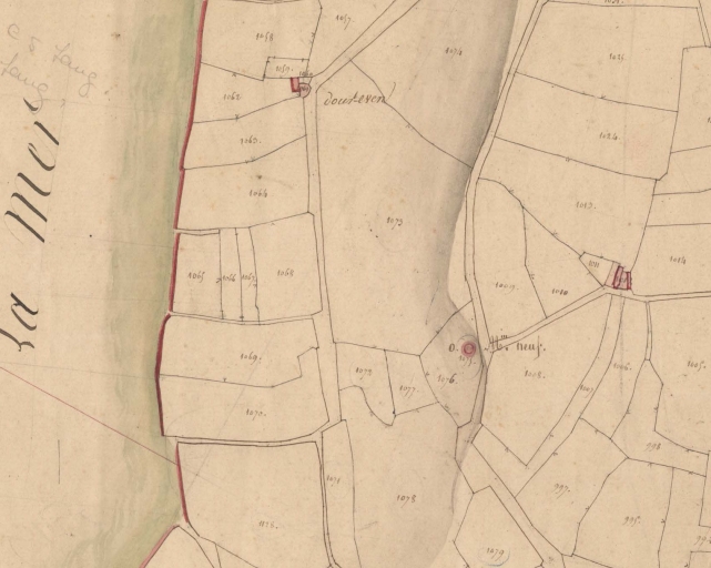 Extrait du cadastre de 1832, F2, 1075 : site du moulin Neuf (AD 22)Immatriculation