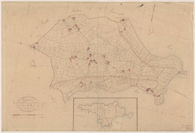 Extrait du cadastre de 1832, section B : le bâti du front de mer de Pors Even (AD 22)Immatriculation