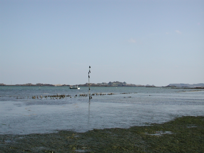 Vue des vestiges des anciens parcs à huîtres enclos de la baie de LaunayImmatriculation