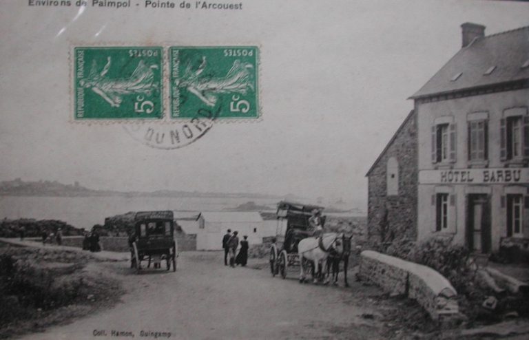 Le bâti de l'embarcadère de l'Arcouest, début 20ème siècle : l'hôtel 'Le Barbu' (carte postale, collection particulière)Immatriculation