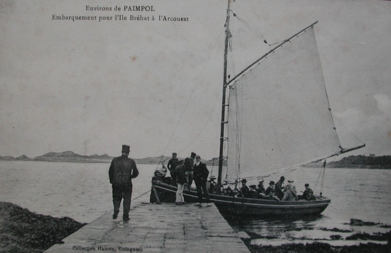 L'embarquement à bord d'un bateau de passage à la voile, surveillé par un douanier, début 20ème siècle (carte postale, collection particulière)Immatriculation