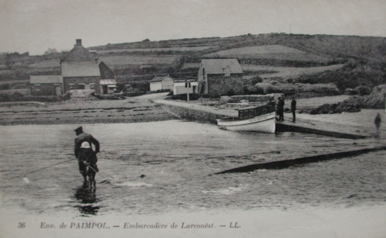 Les premiers commerces à l'embarcadère de l'Arcouest : remarquer l'absence de bâti sur les flancs du plateau (carte postale, collection particulière)Immatriculation