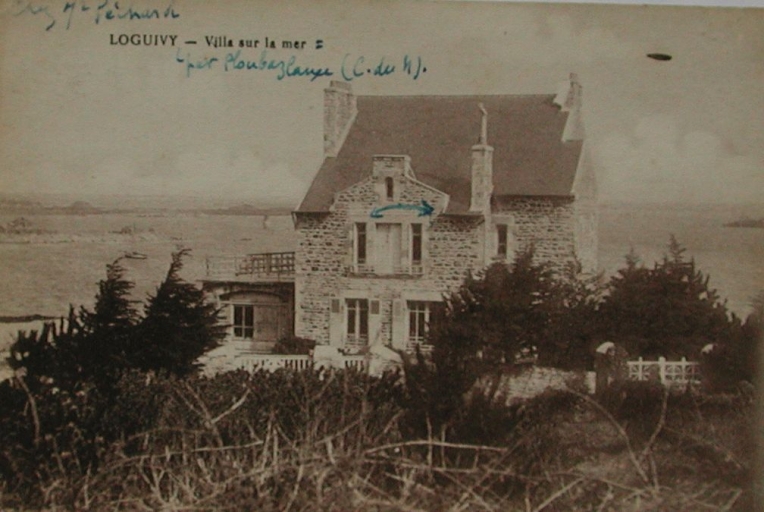 Vue de la façade Sud de l'une des permières maisons d'architecture balnéaire du quartier de Beg Nod, début 20ème siècle (carte postale, collection particulière)Immatriculation