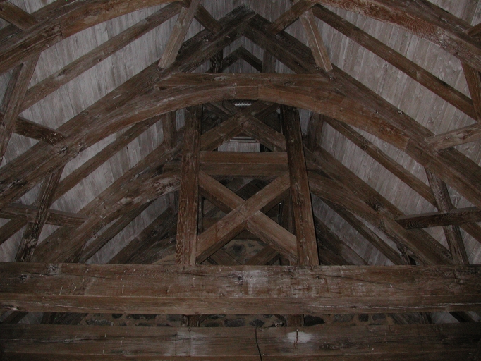 Vue de la charpente intérieure de la chapelle, en plein cintre, avec un seul vaisseauImmatriculation