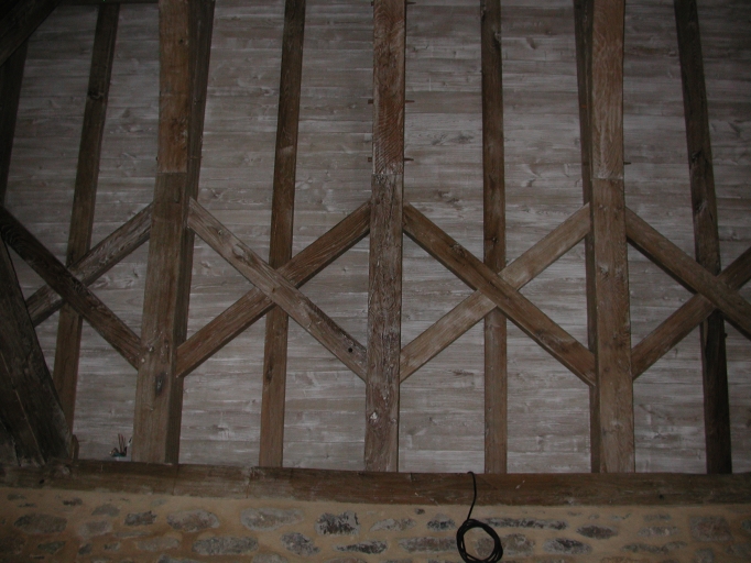 Vue de détail de la charpente intérieure de la chapelle : remarquer les lambrisImmatriculation