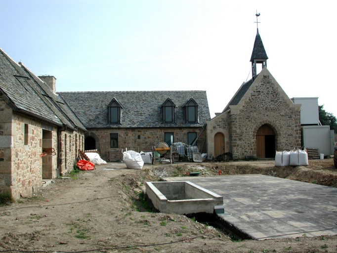 Vue des bâtiments et de la cour en travaux (mini station d'épuration)Immatriculation