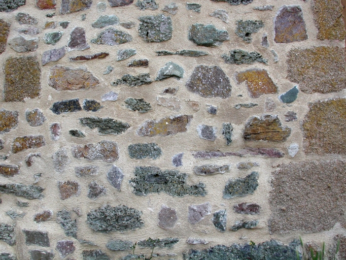 Vue de la maçonnerie des murs extérieurs : remarquer les joints entre les moellons de pierresImmatriculation