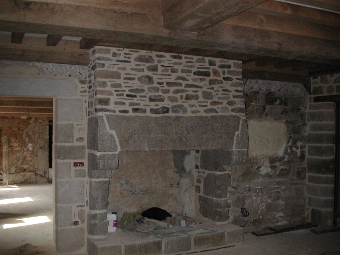 Vue de la cheminée et du mur de refend avec une ouverture de communication entre les bâtiments de l'aile OuestImmatriculation