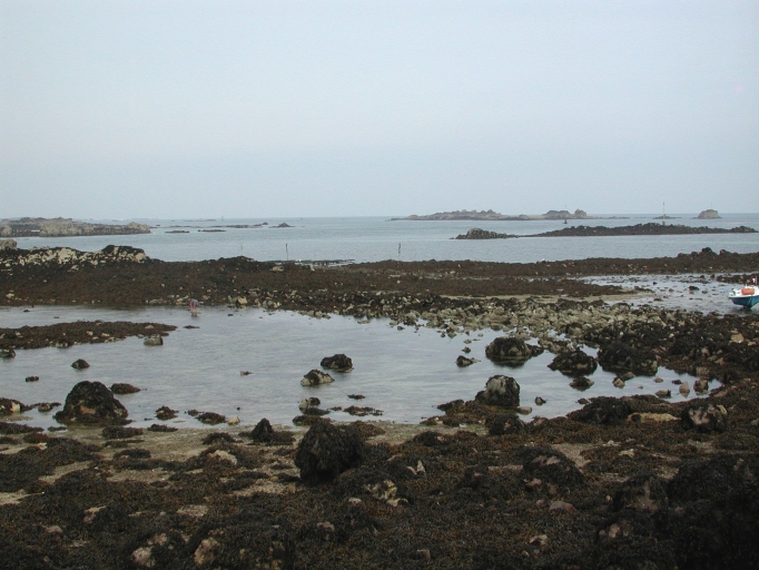 Vue de la pêcherie Nord, à basse mer de grande marée : remarquer la forme de la cuvetteImmatriculation
