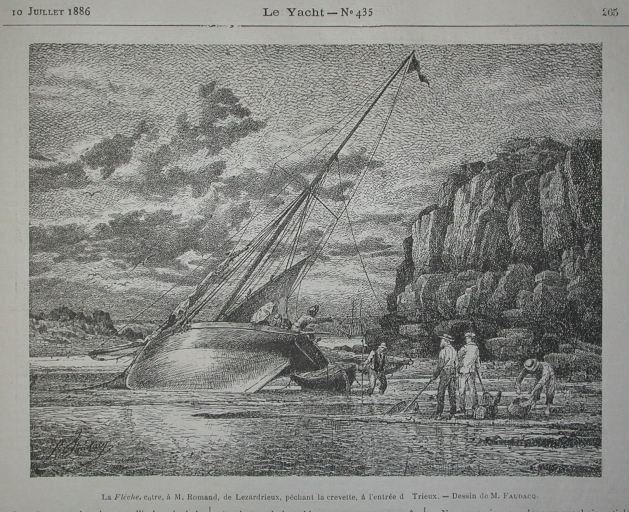 Dessin, gravure de L. M. Faudacq : bateau à léchouage à l'embouchure du Trieux, 1886 (collection particulière)Immatriculation