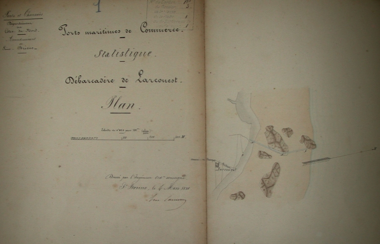 Plan général du débarcadère de l'Arcouest en 1856 (AD 22)Immatriculation