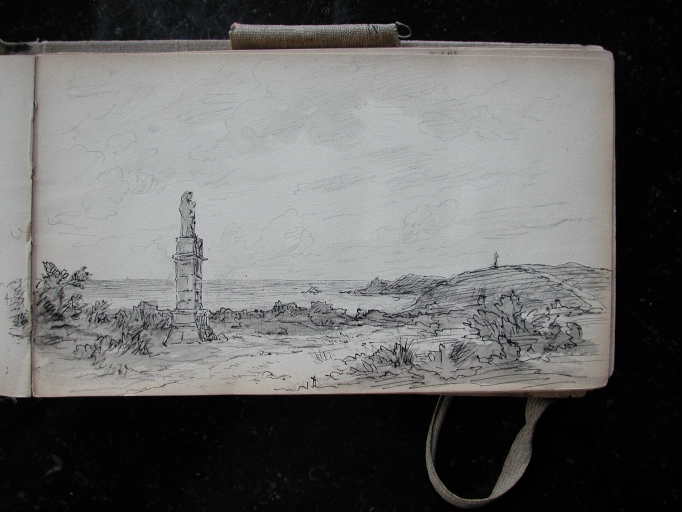 Vue du front de mer Even vers 1906 : remarquer l'absence d'habitation et la croix des Veuves : dessin de Auguste Boulard (fils) (collection particulière)Immatriculation
