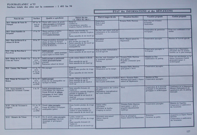 Etat des informations et des réflexions sur les sites de la commune de Ploubazlanec, 1998 (DIREN Bretagne)Immatriculation