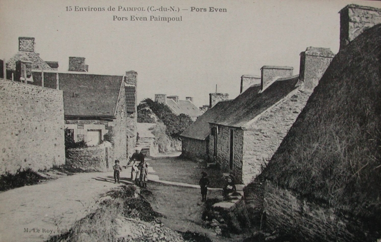 La descente vers Pors Even au début 20ème siècle : remarquer les couvertures en chaume (collection particulière)Immatriculation