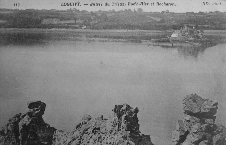 Le corps de garde de l'îlot de Roc'h Arhant, au bord du Trieux, début 20ème siècle : le douanier était un Bechet de Loguivy (carte postale, collection particulière)Immatriculation