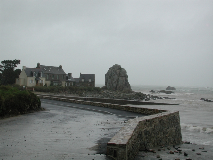 Vue de la digue-mur et de la cale de Pors HirImmatriculation