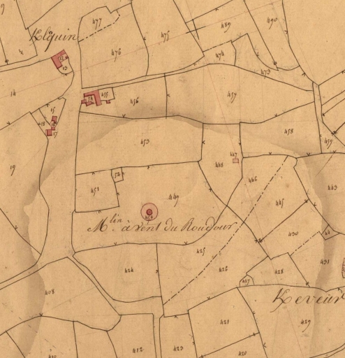 Extrait du cadastre de 1834 : le moulin à vent du Roudour (AD 22)Immatriculation