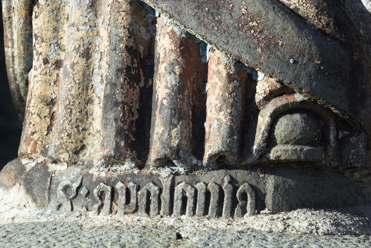 Enclos, partie sud : statue de sainte Apolline, inscriptionImmatriculation