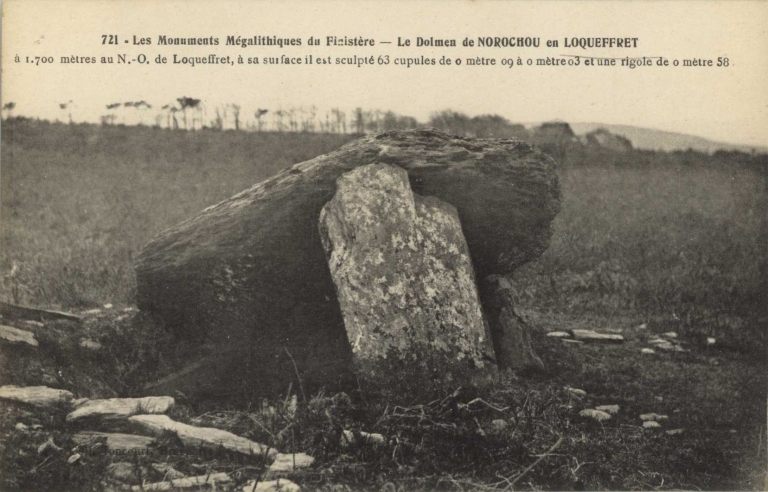 Dolmen de Norohou, carte postale ancienne, vers 1900 (détruit en 1978)Immatriculation