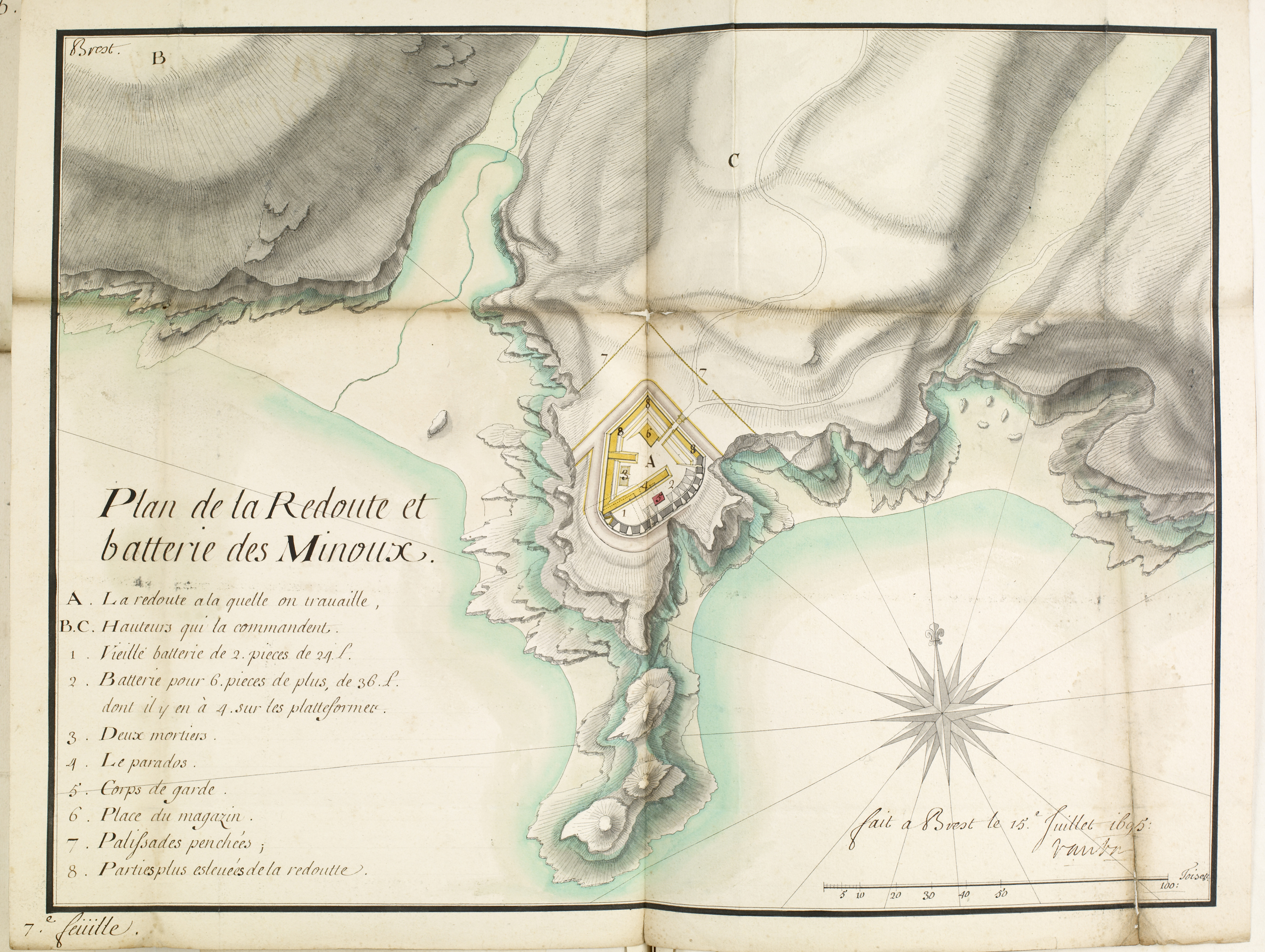 Plan de la redoute et batterie des Minoux [sic], fait à Brest le 15 juillet 1695, VaubanImmatriculation
