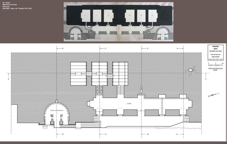 Plan du sous-sol, état existant, septembre 2007. Plan de Jean-Nicolas Trouille, 1811-1813 (extrait de l'étude préalable à la restauration de Marie-Suzanne de Ponthaud, Architecte en Chef des Monuments Historiques)Immatriculation