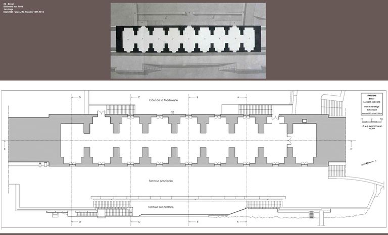 Plan du 1er étage, état existant, septembre 2007. Plan de Jean-Nicolas Trouille, 1811-1813 (extrait de l'étude préalable à la restauration de Marie-Suzanne de Ponthaud, Architecte en Chef des Monuments Historiques)Immatriculation