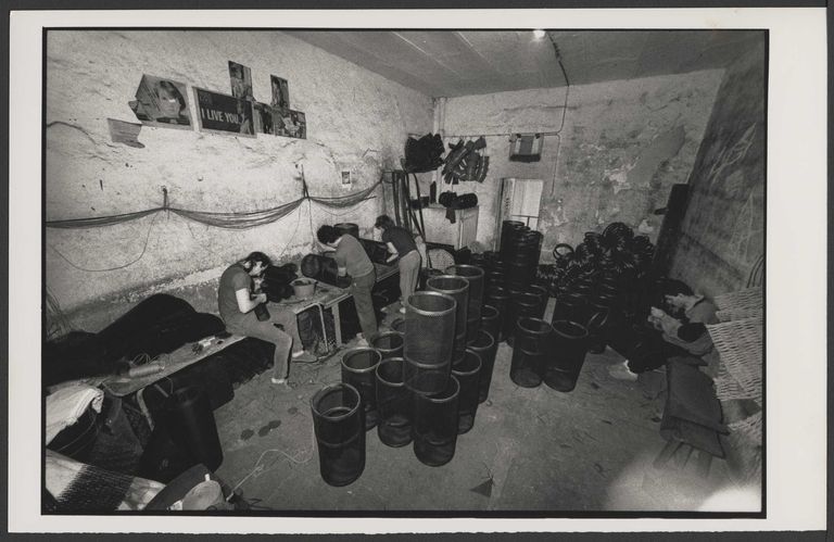 La prison de Pontaniou par Bruno Ravalard, 1989 : l'atelier de travail, quatre détenus photographiés fabriquant des poubellesImmatriculation