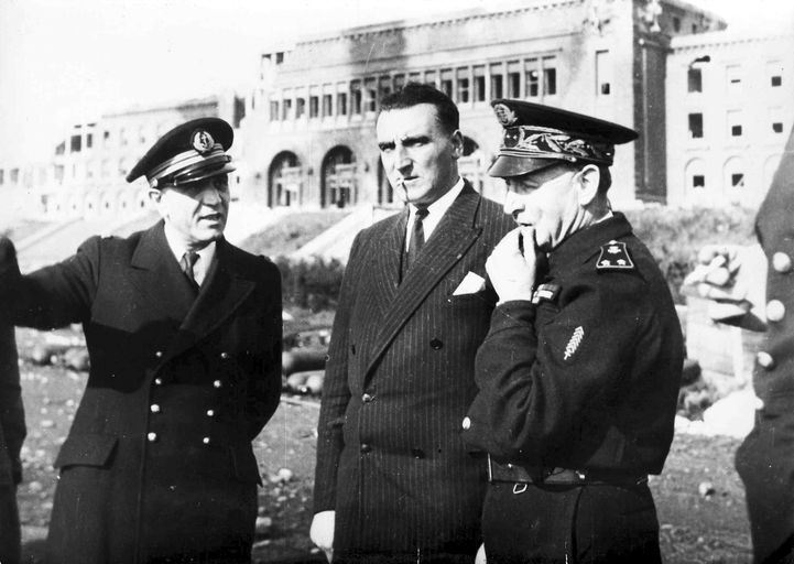 Vue de la visite du ministre de la marine Louis Jacquinot. A ses côtés l'amiral Georges Thierry d'ArgenlieuImmatriculation