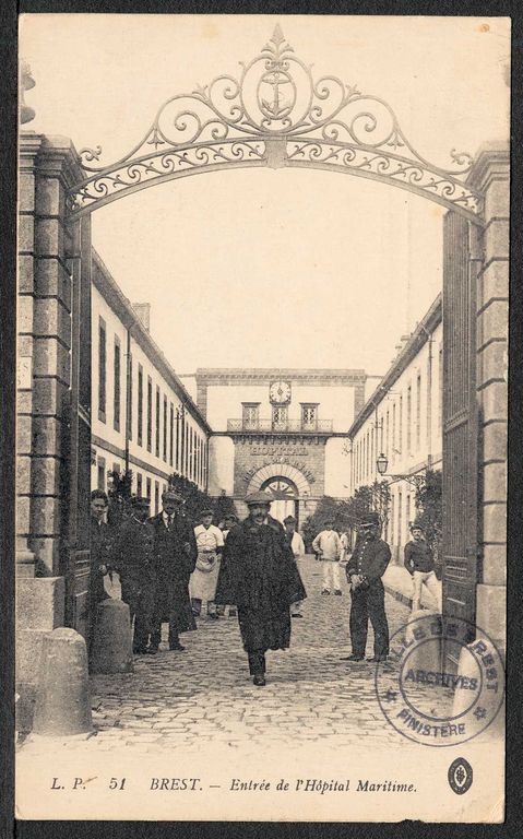 L'hôpital maritime de Brest : entrée. Carte postaleImmatriculation