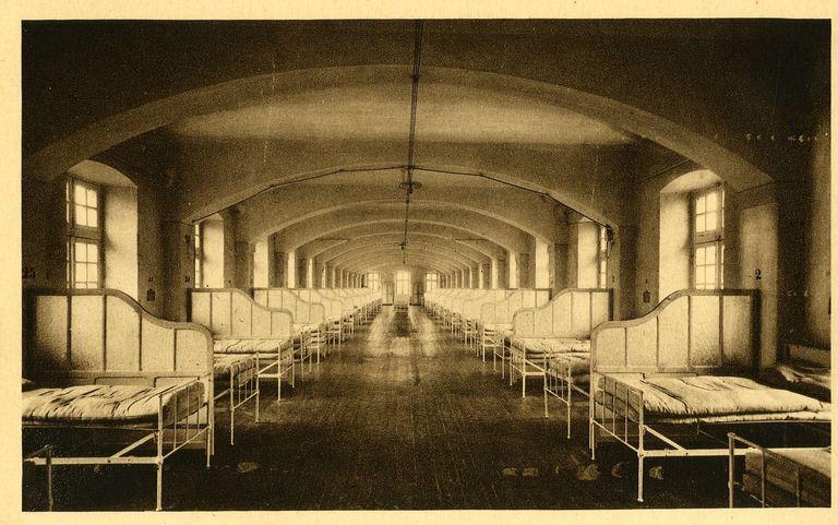 L'hôpital maritime de Brest : intérieur, salle des malades avec lit individuel et cloison de sépartion pour deux lits. Carte postaleImmatriculation