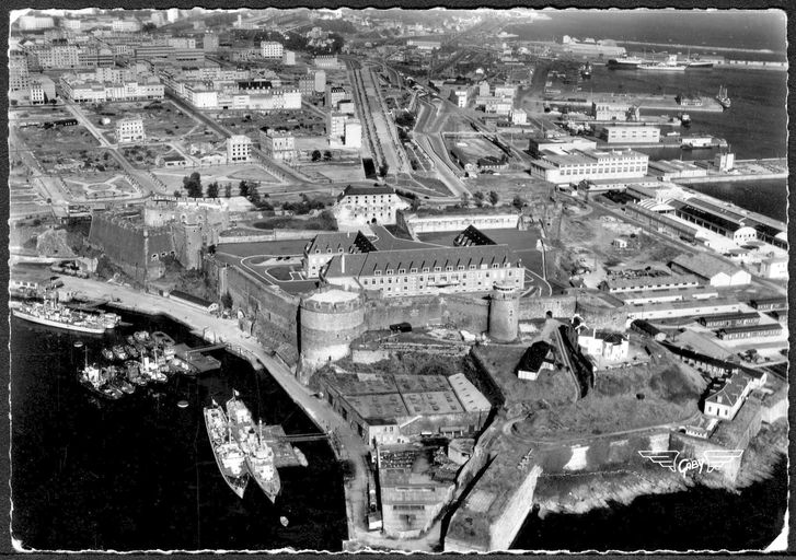 Vue aérienne oblique du château de Brest, carte Postale postérieure à 1953Immatriculation