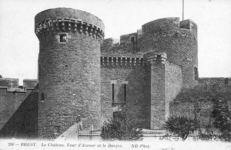 Vue du château de Brest : tour Azénor et donjon, porte d'entrée. Carte PostaleImmatriculation