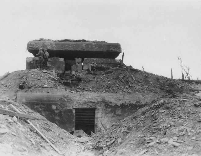 Vue du poste de direction de tir de type M 157 des batteries lourdes du Portzic, septembre 1944 (U.S. Army Signal Corps)Immatriculation