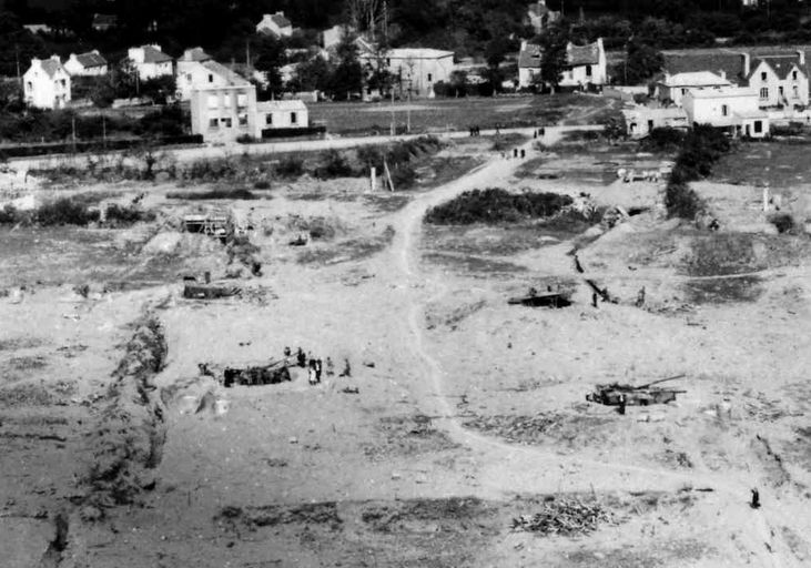 Vue de la festung Brest pendant la bataille de Brest, U.S. Army Signal Corps, septembre 1944 : vue aérienne oblique de la batterie antiaérienne codée M.K.B. Zebra (4 canons de 10,5 cm ; 2 canons de 2 cm) (2 / Ma Fla 811)Immatriculation