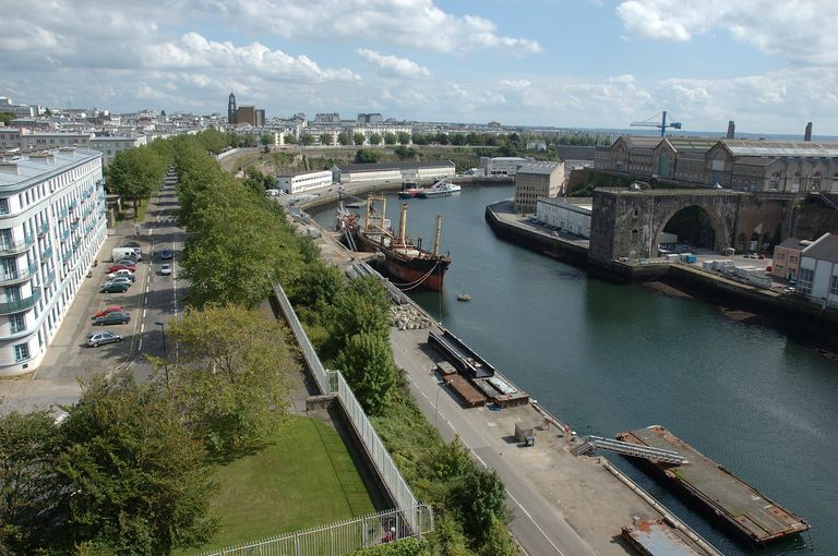 Vue de l'emplacement des corderies haute et basse de l'arsenal de Brest aujourd'hui boulevard Jean Moulin : plate-forme de la corderie hauteImmatriculation