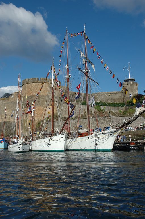 Vue de la Penfeld et du château lors des Fêtes maritimes de Brest 2008 (la goélette Belle-Poule, le dundee Mutin et la yawl Grande Hermine de la Marine Nationale)Immatriculation