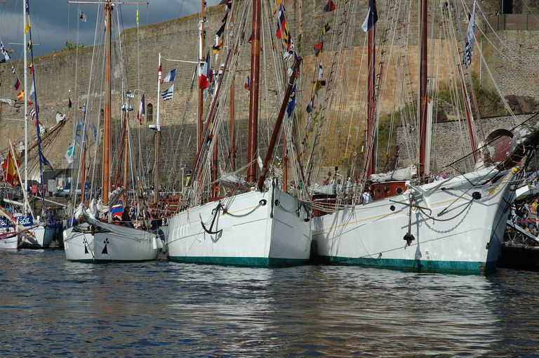 Vue de la Penfeld et du château lors des Fêtes maritimes de Brest 2008 (la goélette Belle-Poule, le dundee Mutin et la yawl Grande Hermine de la Marine Nationale)Immatriculation