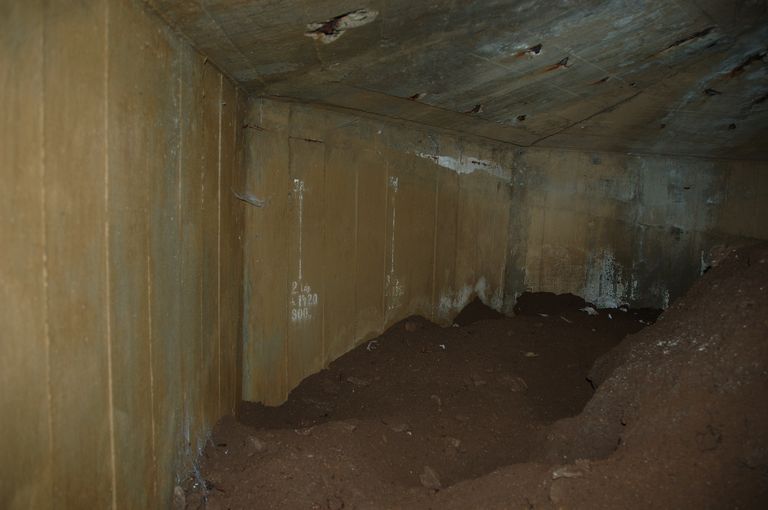 Vue d'un ensemble fortifié de la Presqu'île de Kermorvan constitué d'un Tobrouk pour mortier de 80 mm, tranchée bétonnée et abri : marquage allemandImmatriculation