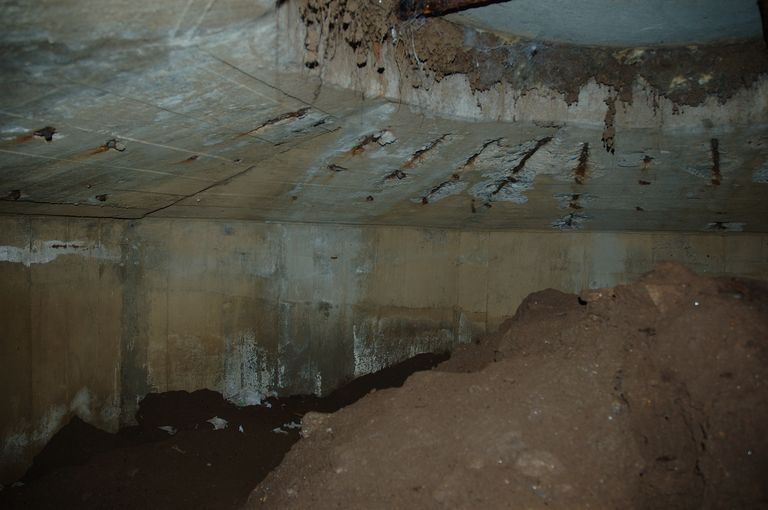 Vue d'un ensemble fortifié de la Presqu'île de Kermorvan constitué d'un Tobrouk pour mortier de 80 mm, tranchée bétonnée et abri : marquage allemandImmatriculation