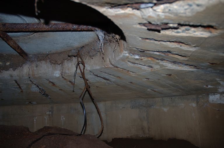Vue d'un ensemble fortifié de la Presqu'île de Kermorvan constitué d'un Tobrouk pour mortier de 80 mm, tranchée bétonnée et abri : marquage allemandImmatriculation