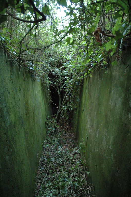 Vue d'un ensemble fortifié de la Presqu'île de Kermorvan constitué d'un Tobrouk pour mortier de 80 mm, tranchée bétonnée et abriImmatriculation