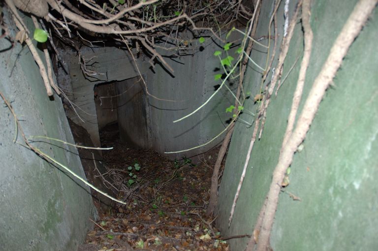 Vue d'un ensemble fortifié de la Presqu'île de Kermorvan constitué d'un Tobrouk pour mortier de 80 mm, tranchée bétonnée et abriImmatriculation