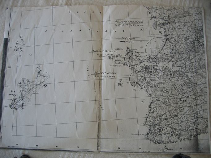 Carte allemande des ensembles fortifiés du groupe défensif côtier de Saint-Renan codé Re (Re 38 - 59 ; Re 81 - 83 ; Re 99 - Re 124 ; Re 301 - 305 ; Re 315 ; Re 319 ; Re 503)Immatriculation