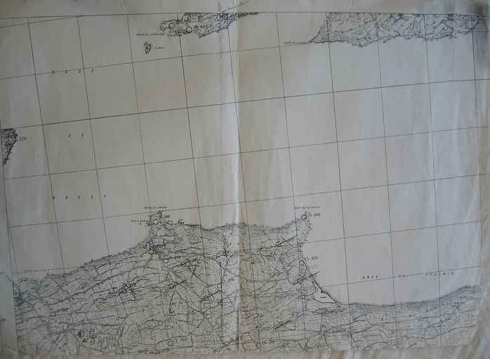 Carte allemande des ensembles fortifiés du groupe défensif côtier de Crozon codé Cr (Cr 23 ; Cr 306 ; Cr 308 etc.)Immatriculation