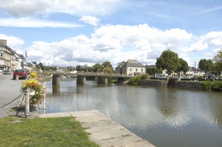 La Vilaine, pont routier au nord du Grand Vannage : vue générale prise de l'avalImmatriculation