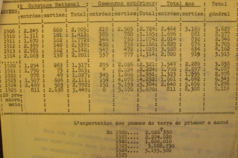 Tableau du trafic maritime du cabotage entre 1906 et 1925 (AD 22)Immatriculation