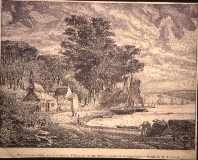 Extrait de la revue 'Le Yacht', 1886 : gravure de Faudacq représentant le port de Lézardrieux, fin 19ème siècle (collection particulière)Immatriculation