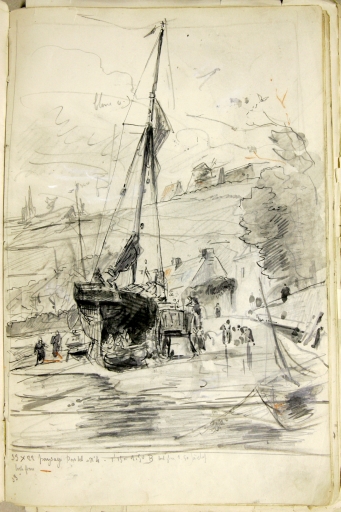 Dessin de Faudacq : scène d'échouage, déchargement d'un sloop, 4ème quart 19ème siècle (collection particulière)Immatriculation