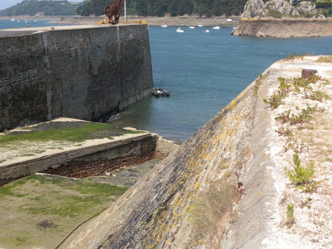Vue de la cale de carénage et des murs de quais ou bajoyers qui délimitent le bassin submersibleImmatriculation