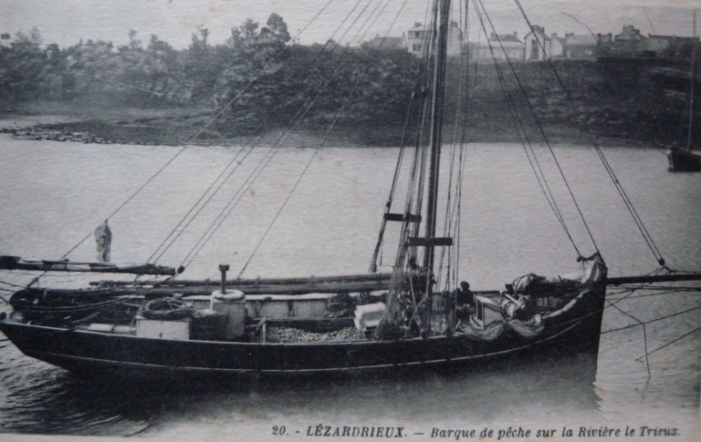 Caboteur chargé de pommes en vrac au Prostern, début 20ème siècle (carte postale, collection particulière)Immatriculation